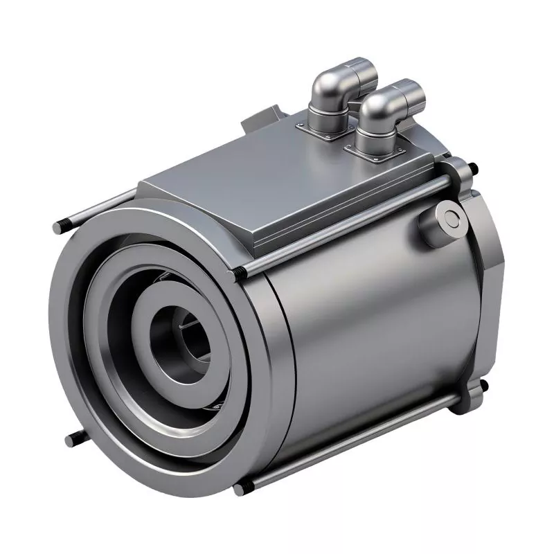 이 디자인은 수냉식 시스템과 함께 작동합니다. 가장 많은 열을 발생시키는 모터 부분을 냉각수 재킷으로 직접 감쌀 수 있습니다. 이러한 직접 냉각은 모터가 과열되는 것을 막고 모터를 세게 밀 때에도 강력한 작동을 유지하는 데 필수적입니다.